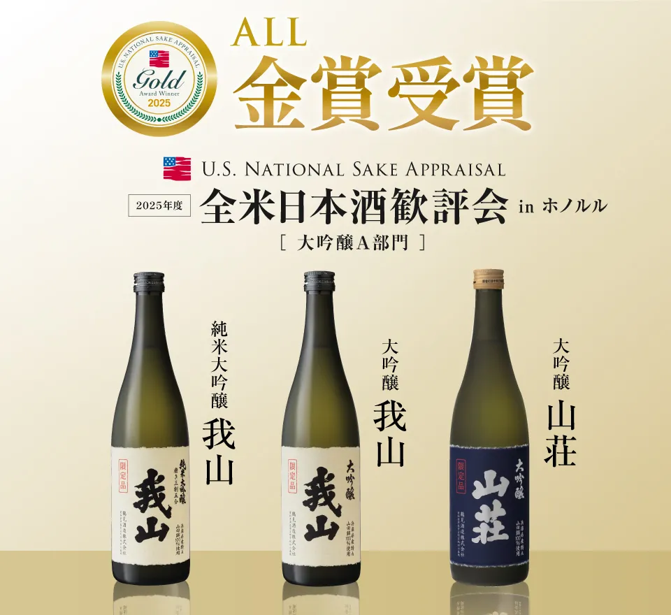 日本時間の2025年9月10日(水)、「2025年度 全米日本酒歓評会」の結果が発表されました。大吟醸A部門において、【純米大吟醸 我山】【大吟醸 我山】【大吟醸 山荘】が金賞を受賞致しました。