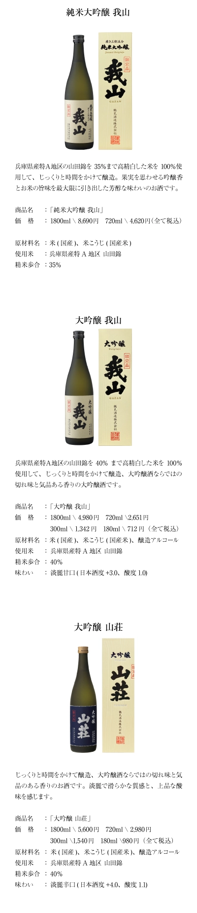 また、「大吟醸 我山」「大吟醸 山荘」が金賞を受賞しました。