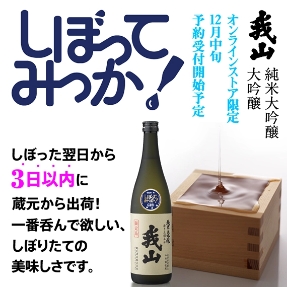鶴見酒造は今季より、生酒製品【しぼってみっか!】をオンラインストアで販売。鶴見酒造は今季より、醸造毎に数量限定にて純米大吟醸・大吟醸の生酒製品『しぼってみっか!』をオンラインストアで販売します。 【しぼってみっか!販売について】 20…